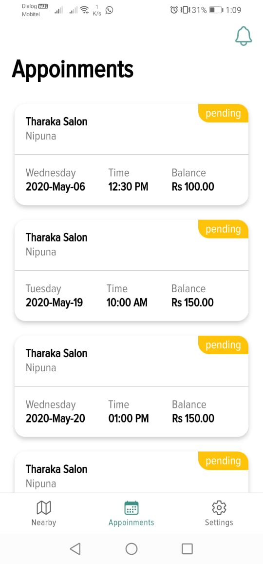 SalonApp will remember your appointments and notify about the appointment periodically